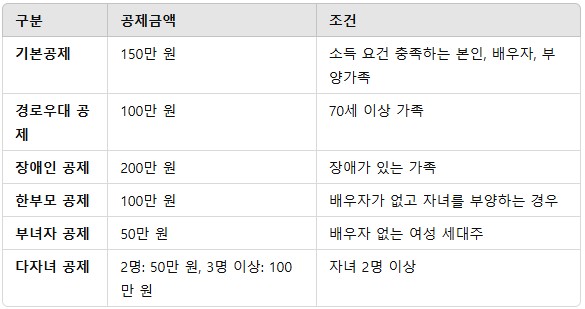 - 본인: 자동으로 공제 (소득에 관계가 없습니다.)